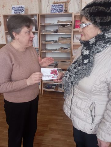 В преддверии Международного женского дня библиотекарь Краснопольской центральной районной библиотеки им. М. Ткачёва провела акцию: «Праздник весны, цветов и любви»,поздравила женщин с первым весенним праздником и вручила поздравительные открытки с пожеланиями здоровья, семейного счастья, благополучия и весеннего настроения.
