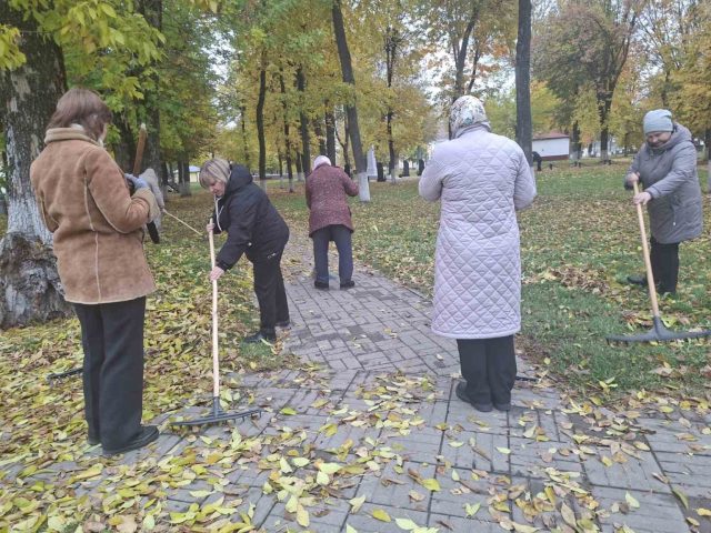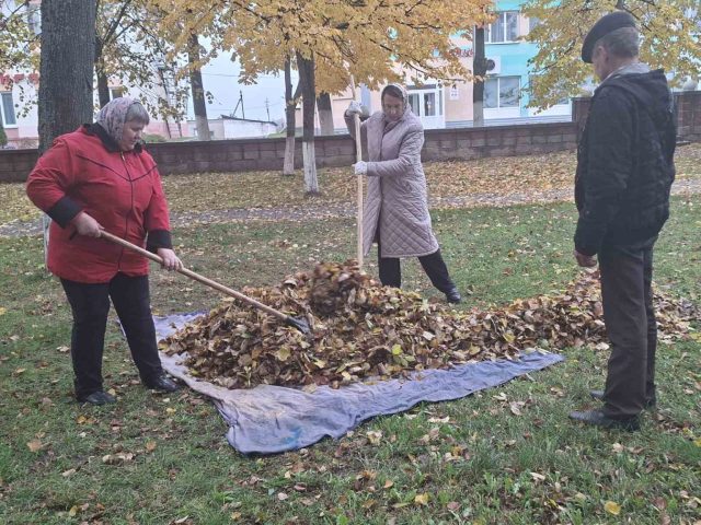 Сотрудники Краснопольской центральной районной библиотеки им. М. Ткачёва приняли участие в наведении порядка в городском сквере: уборка опавшей листвы и мусора.