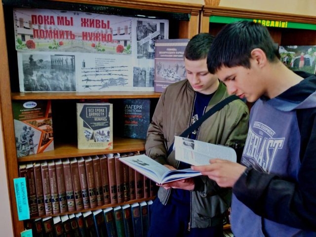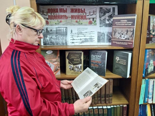 Библиотекарь Галина Николаевна рассказала присутствующим о зверствах фашистов в годы Великой Отечественной войны, обо всех ужасах, которые пережили узники концлагерей Тростенец, Красный Берег, Озаричи, как их морили голодом, истязали побоями, непосильным трудом, пытками, проводили забор крови, убивали в газовых камерах. Никого из участников мероприятия не оставили равнодушными книги, рассказывающие об ужасах фашистского заключения.