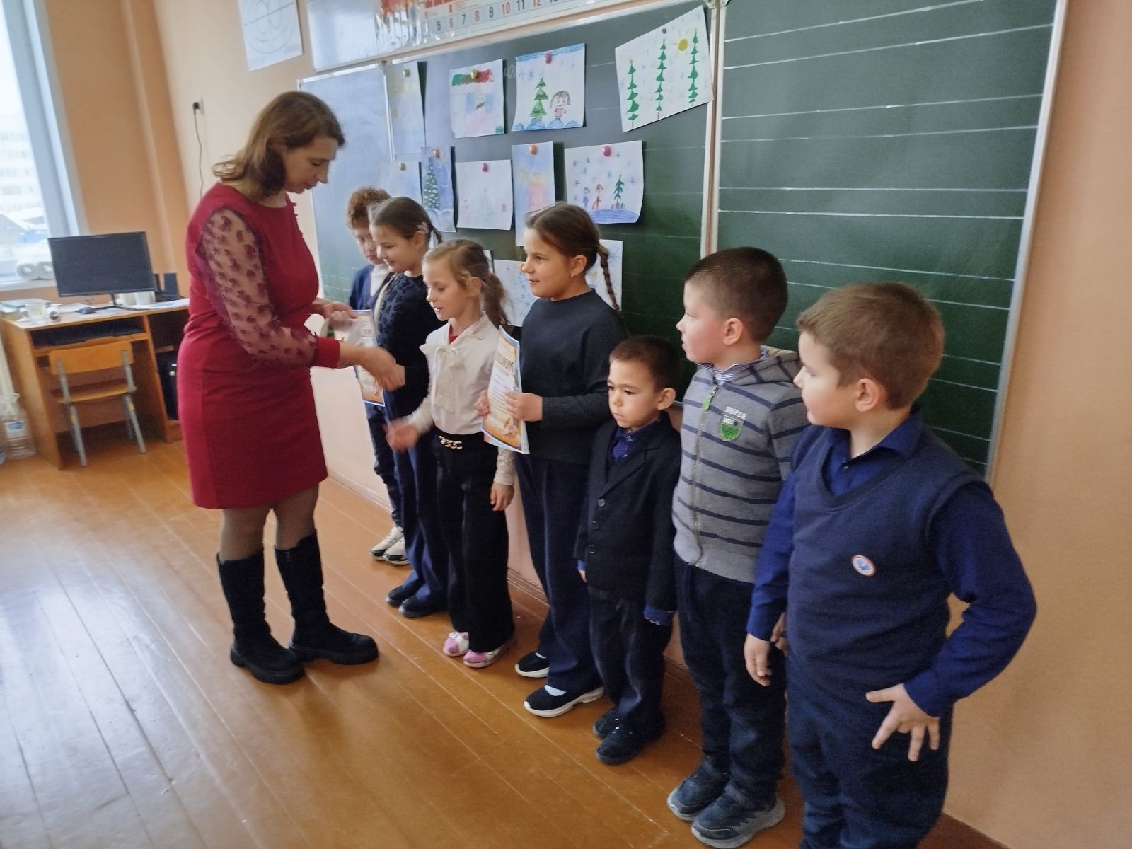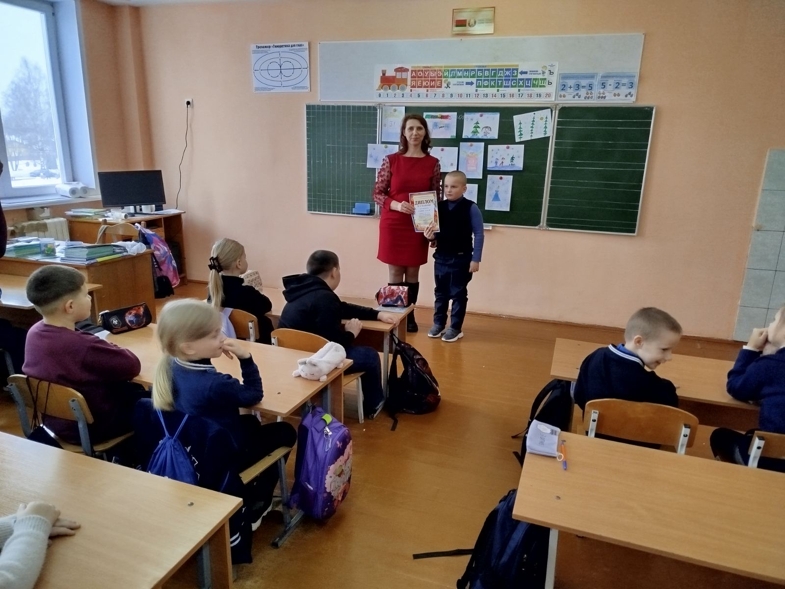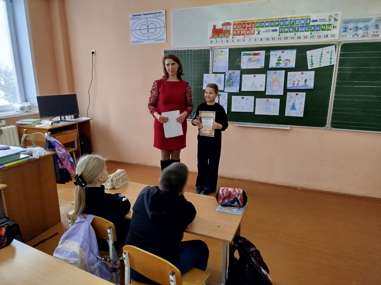 Библиотекарь Краснопольской центральной районной библиотеки им. М. Ткачёва Коршукова С.В. провела в Краснопольской районной гимназии награждение победителей конкурса детского рисунка «Вальс снежинок».