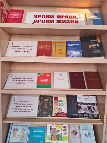 В Краснопольской центральной районной библиотеке им. М. Ткачёва для читателей оформлена книжная выставка-обзор «Уроки права -уроки жизни». Представленные на ней книги в познавательной форме рассказывают о законах, правах и обязанностях. Здесь представлены законодательные документы, методические пособия, которые защищают права людей. Имеется основной закон Республики Беларусь – Конституция, Конвенция о правах ребёнка и др. Очень важно знакомить пользователей с неотъемлемыми правами, привлечь внимание к их проблемам соблюдения прав человека. Представленная на выставке литература поможет пользователям библиотеки повысить уровень правовой культуры и юридической грамотности в различных отраслях права, поможет в решении конкретных жизненных проблем.