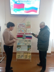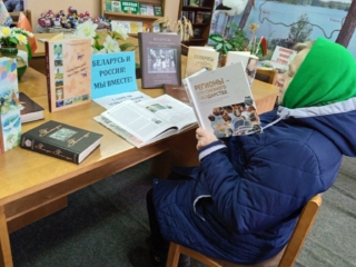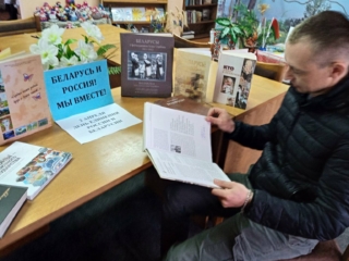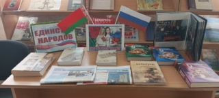 Ленинская сельская библиотека. Тематическая выставка «Беларусь и Россия! Мы вместе!».