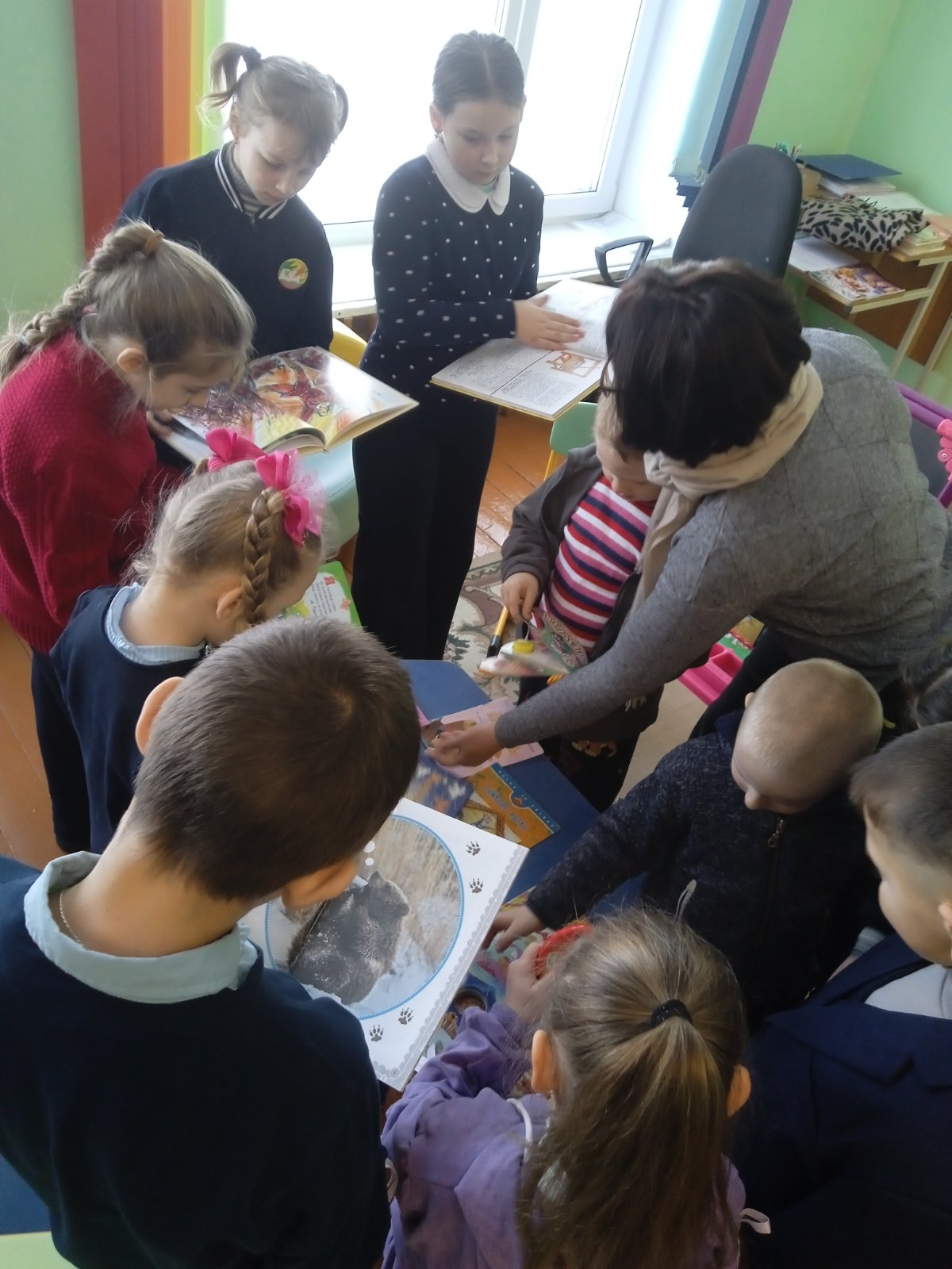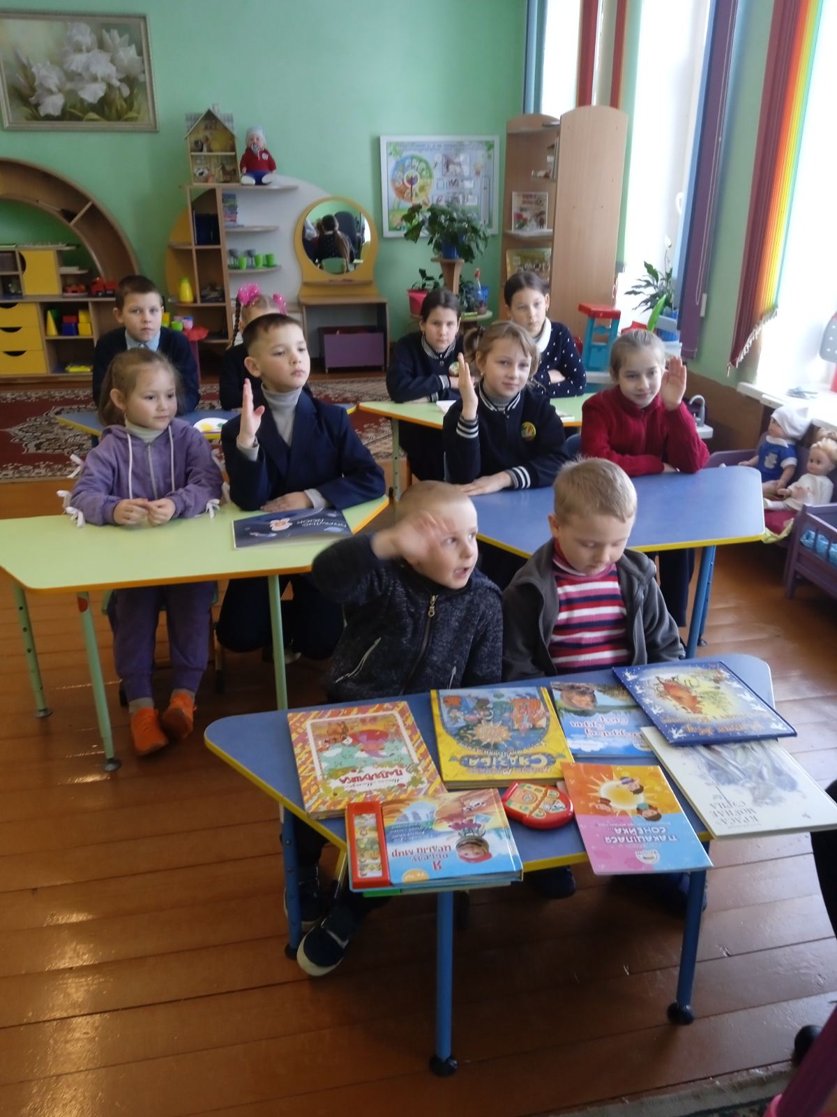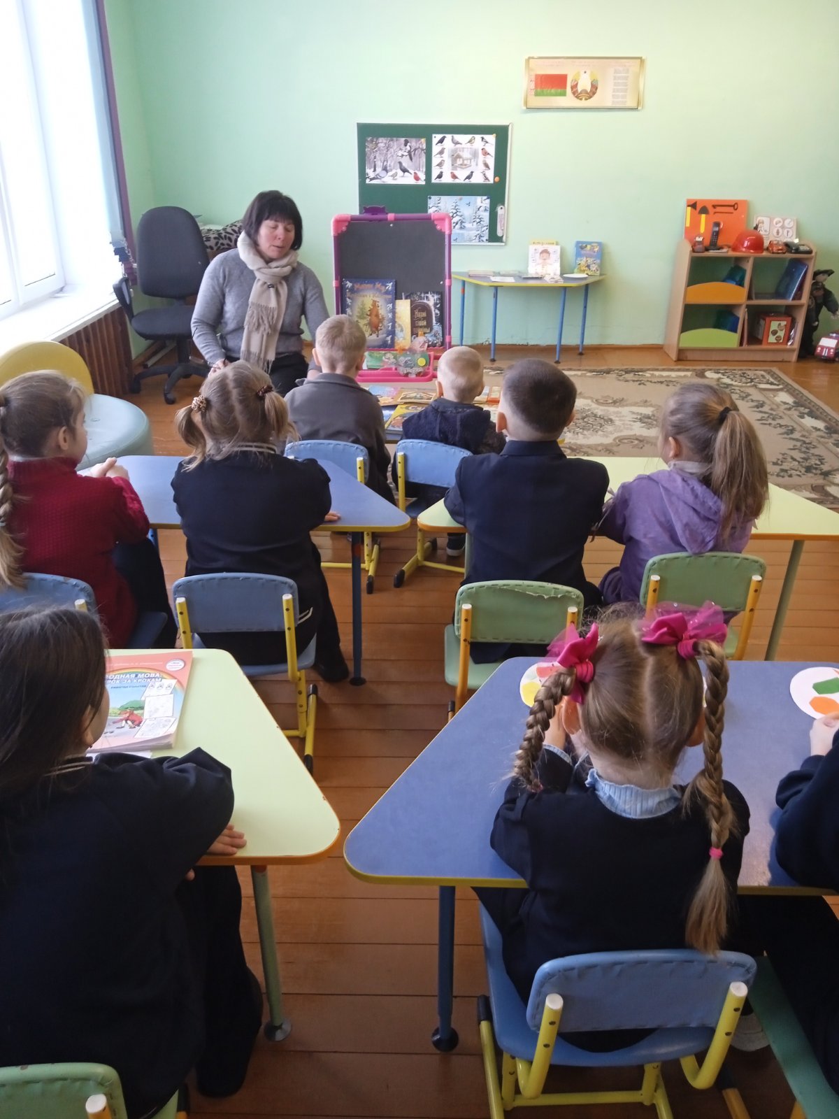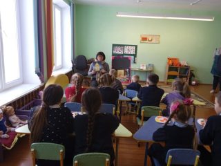 Навучэнцы здзейснілі займальнае падарожжа ў цудоўны свет казак. Разам з бібліятэкарам дзеці прыгадалі беларускія казкі, разглядалі чароўныя ілюстрацыі.