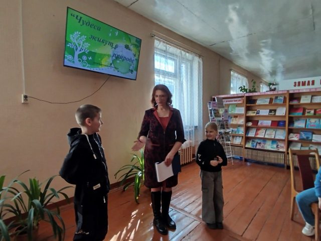 В Краснопольской центральной районной библиотеке им. М. Ткачёва ребята из воспитательно-оздоровительного лагеря Краснопольской районной гимназии совершили экологическое путешествие в удивительный мир природы «Чудеса живут в природе».