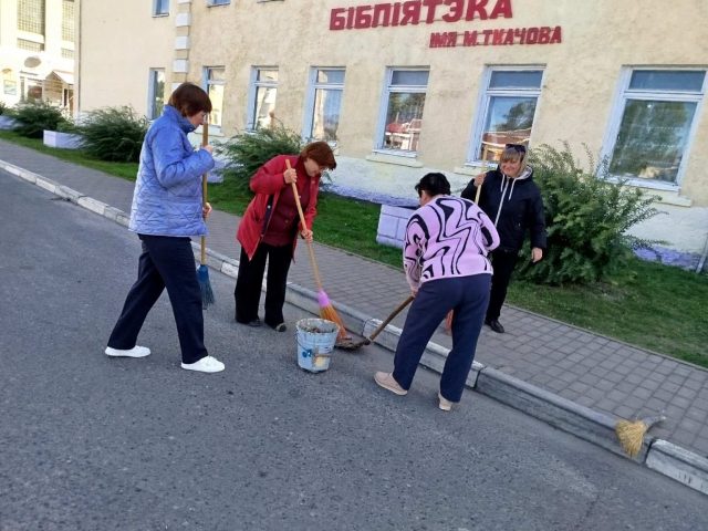 Сотрудники Краснопольской центральной районной библиотеки им. М. Ткачёва приняли участие в наведении порядка в городском сквере и на закрепленной территории
